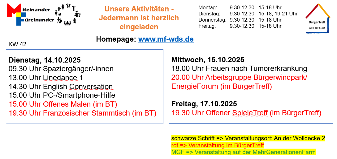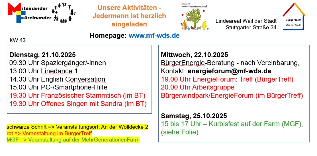 Aktivitäten-Übersicht für KW 42/43