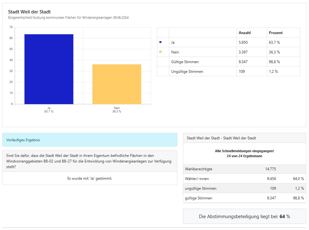 Quelle: Bürgerentscheid Nutzung kommunaler Flächen für Windenergieanlagen 09.06.2024 - Stadt Weil der Stadt